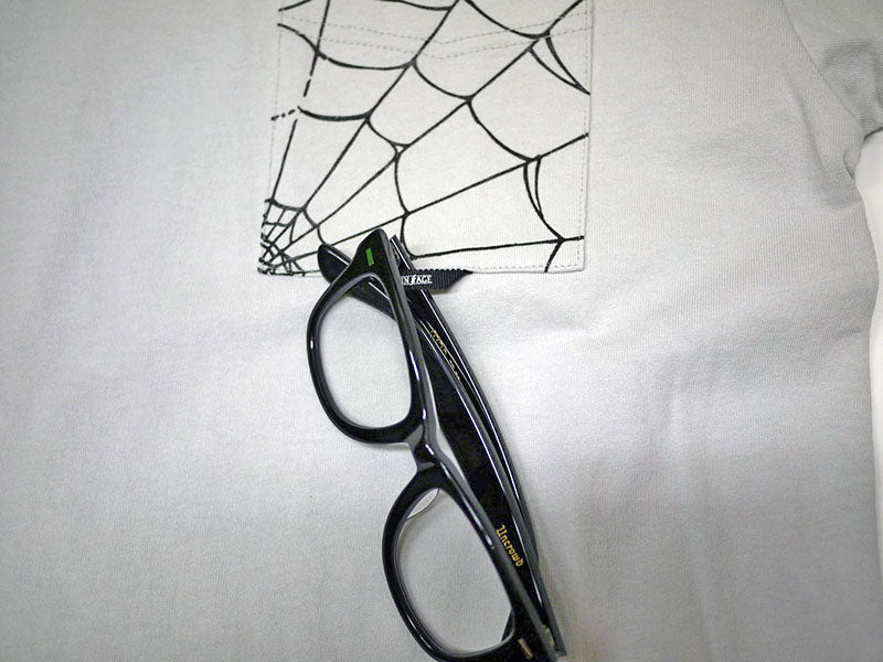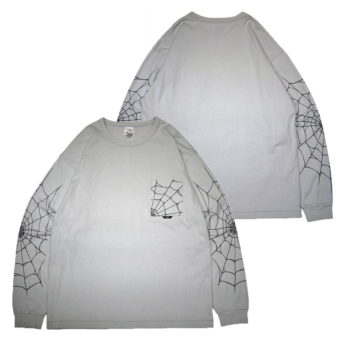 両袖・胸ポケット部にスパイダーウェブプリントを施したロングスリーブTシャツ。